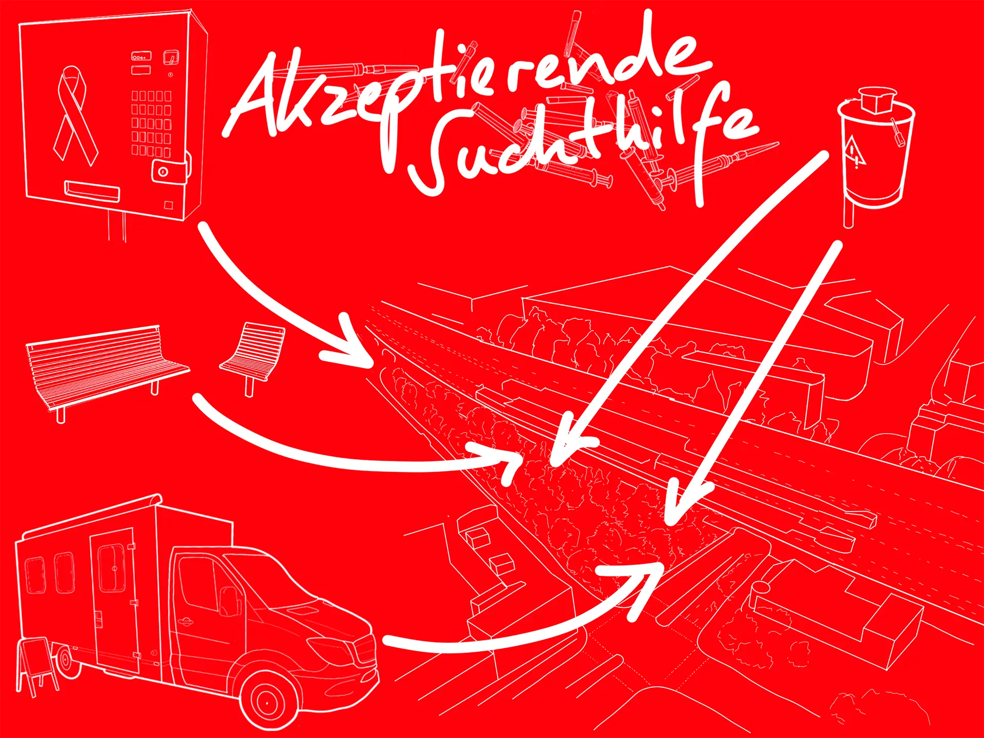 Der Stutti ist nicht nur Treffpunkt für viele verschiedenen Menschen, sondern auch seit vielen Jahren ein Konsumort illegalisierter Drogen. Von Montag bis Freitag steht hier das Konsummobil – ein fester Bestandteil des Platzes, der auch auf Widerstände in der Nachbar*innenschaft stößt. Felix’ Beitrag beleuchtet die Erfahrungen der Sozialarbeiter*innen vor Ort und fragt, wie öffentlicher Raum gestaltet und geteilt werden kann.